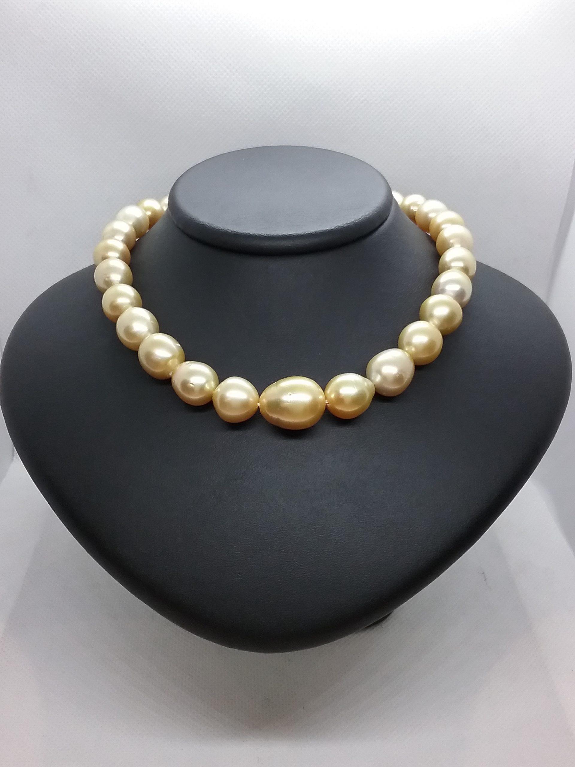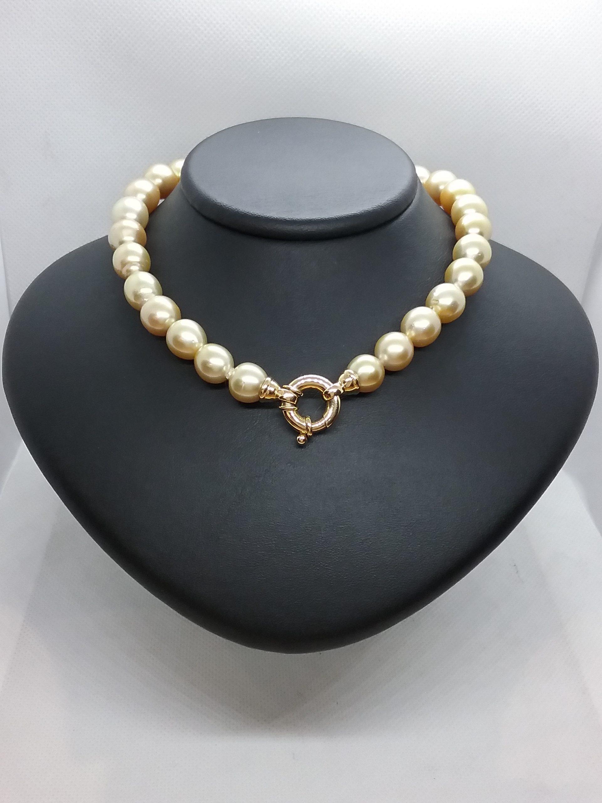 Collier de perles de culture mer du sud couleur Gold 10/14 mm avec fermoir en or jaune 750/1000e pesant 5,70 gr