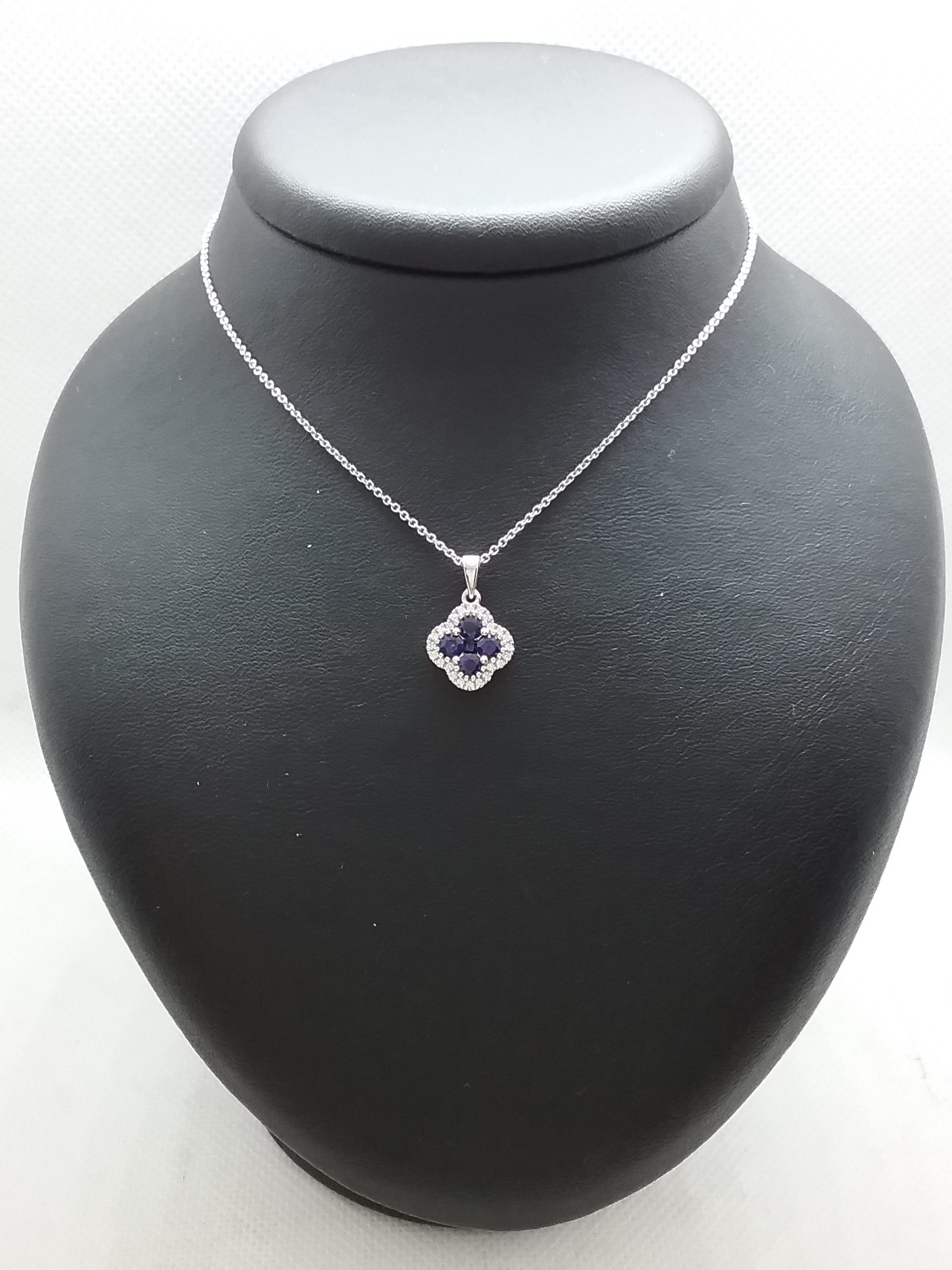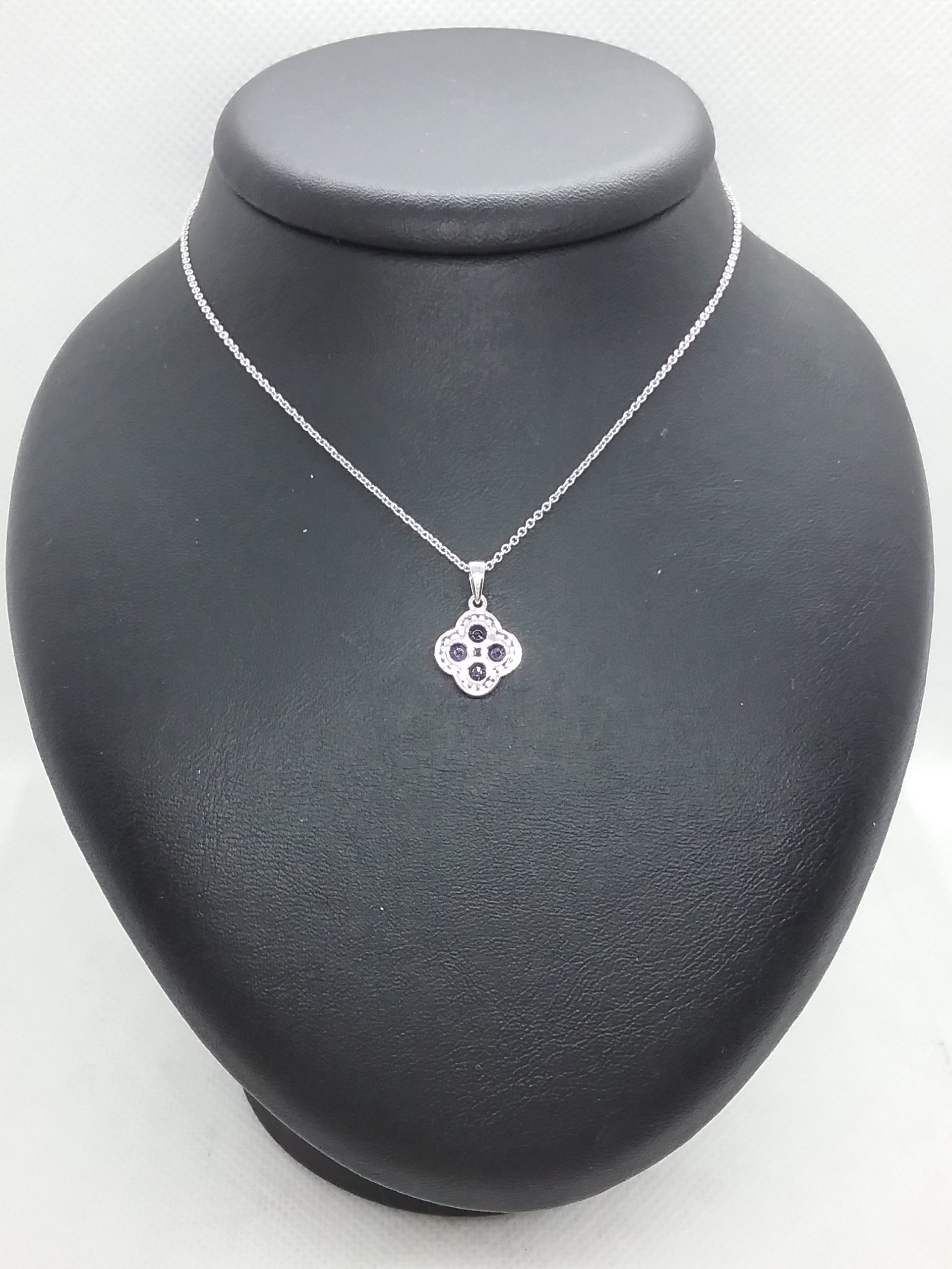 Collier pendentif en or blanc 750/1000e pesant 2,51 gr motif trèfle saphirs diamants
