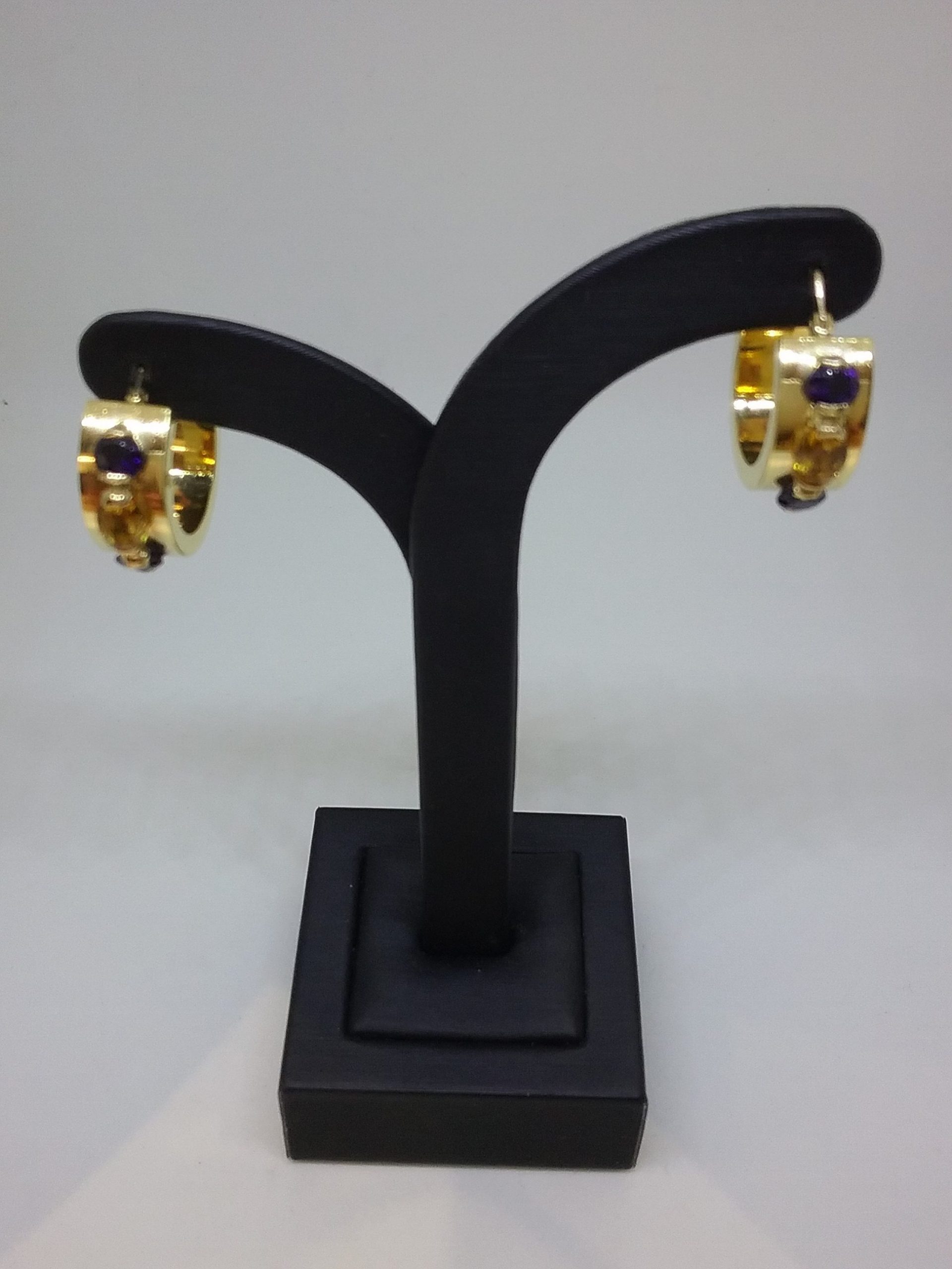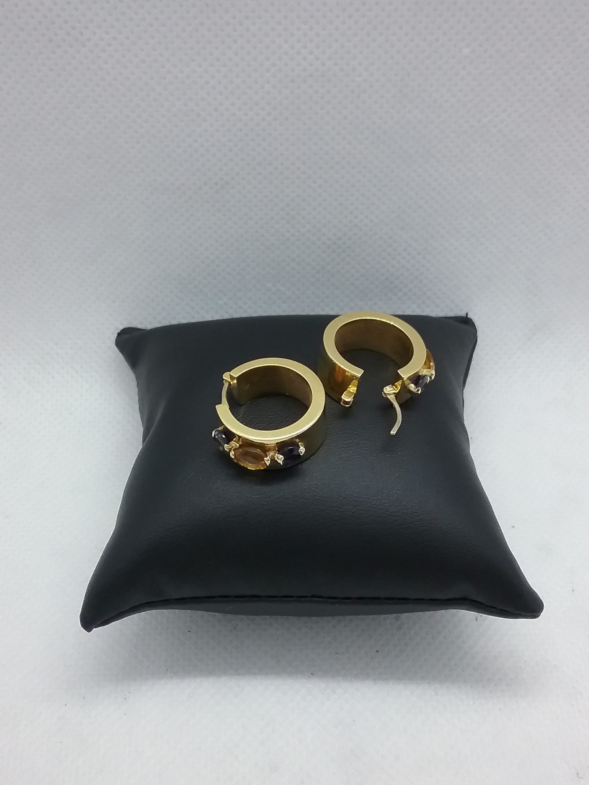 Boucles d’oreilles créoles en or jaune 750/1000e pesant 11,17 gr avec iolite et citrine