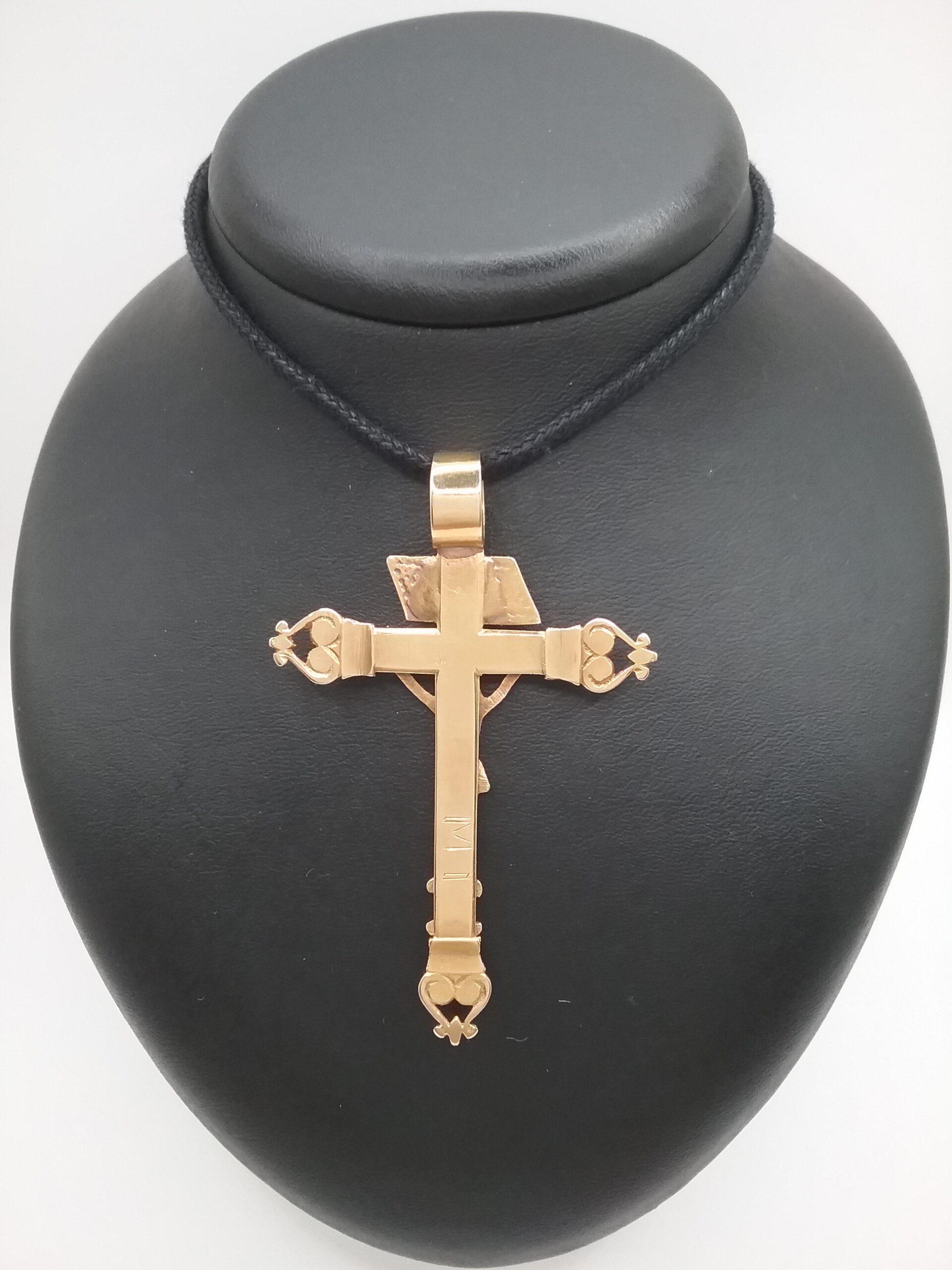 Croix en or rose 750/1000e pesant 7,42 gr Christ en relief