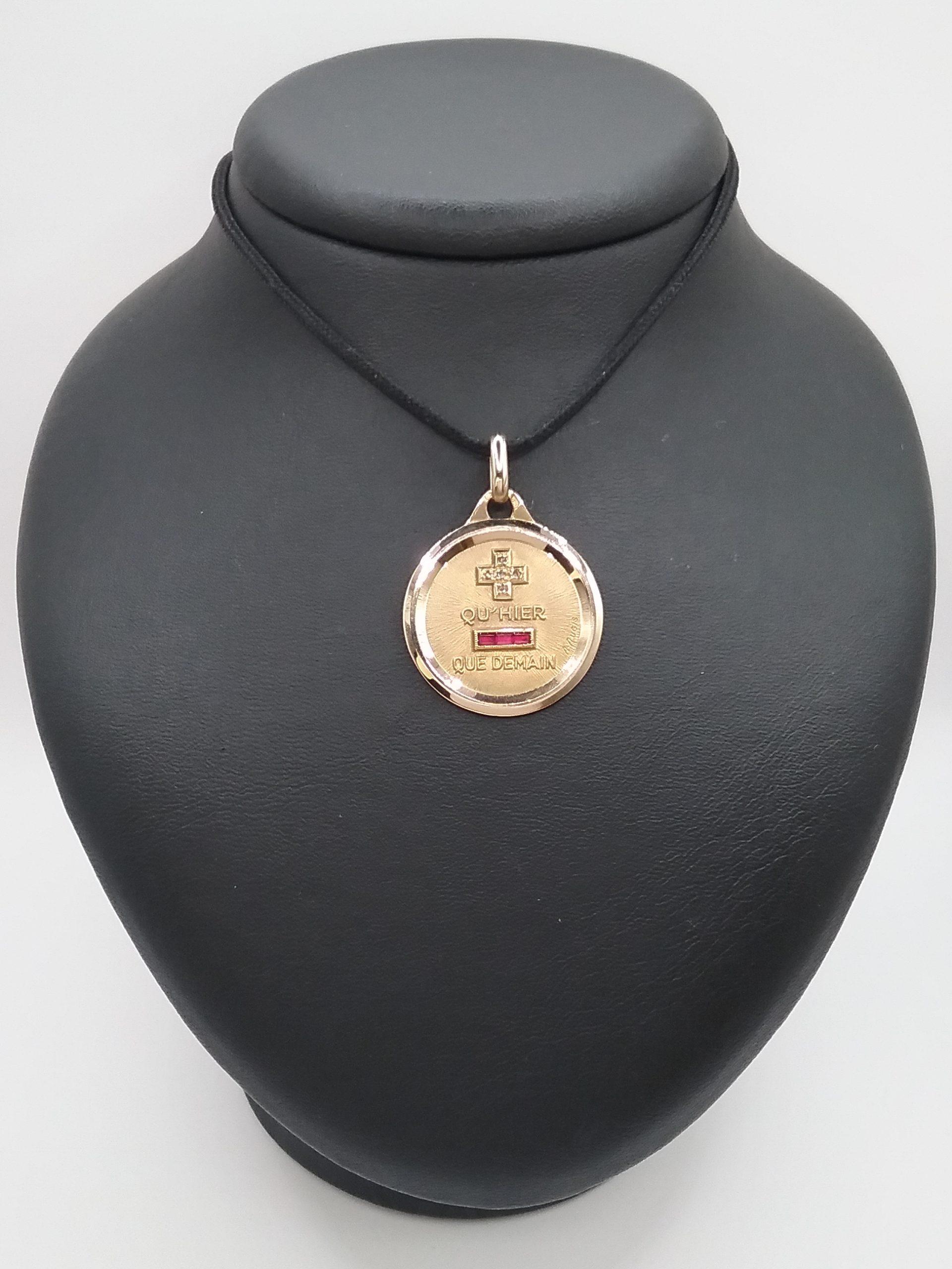 Médaille d’amour en or jaune 750/1000e pesant 5,60 gr sertie de rubis et de diamants