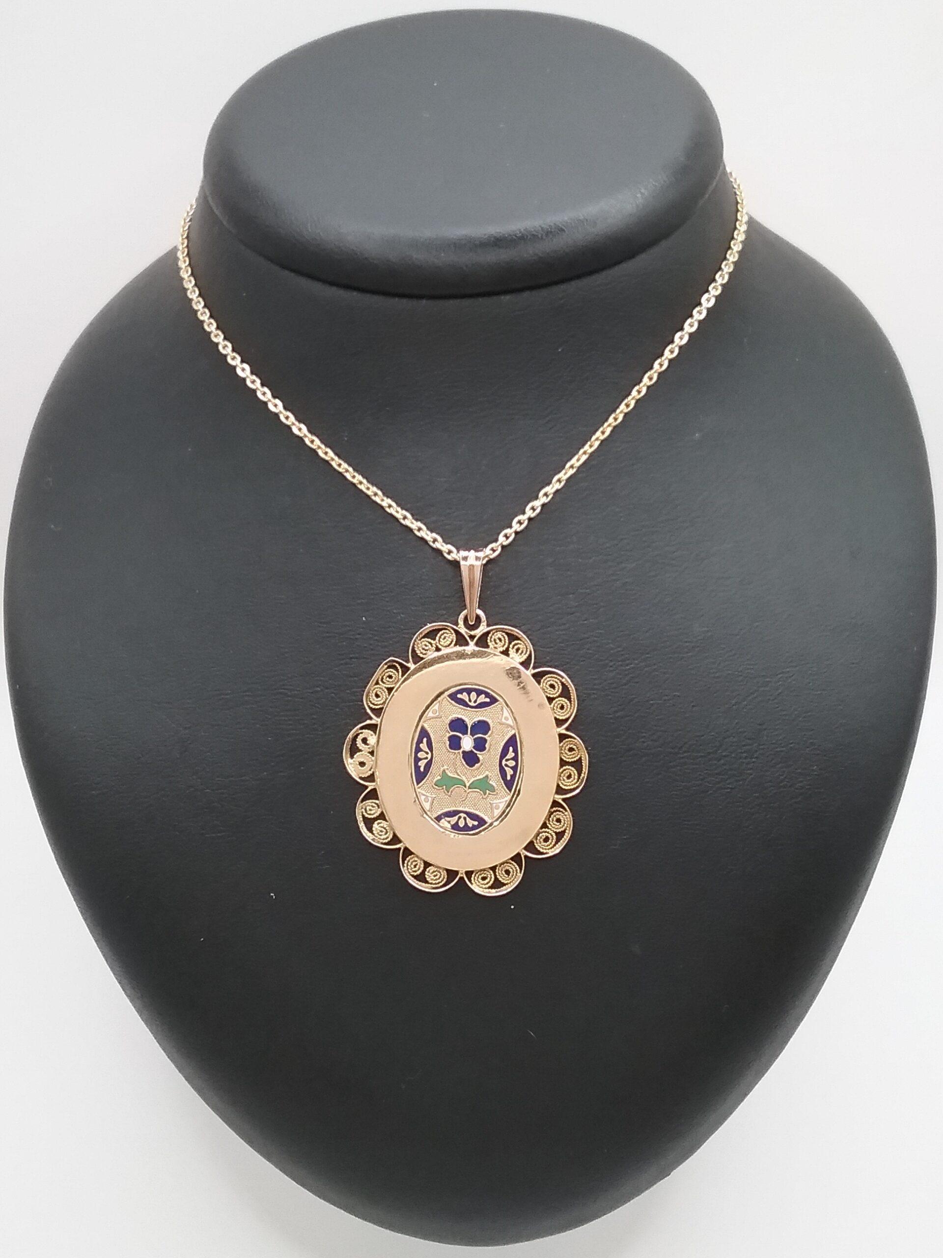 Pendentif émaillé bleu en or rose 750/1000e pesant 2,72 gr