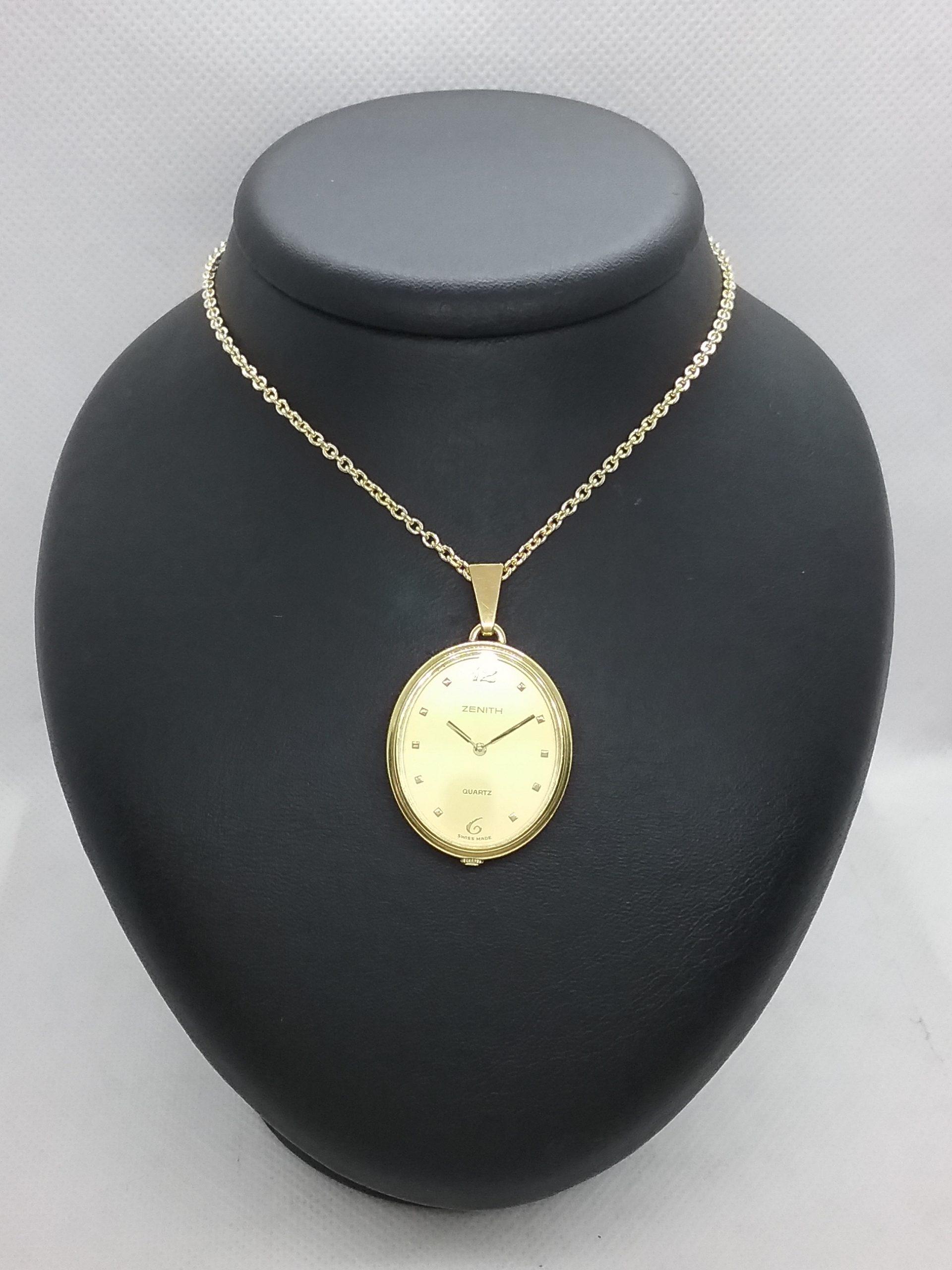 Montre Zenith ovale pendentif en or jaune 750/1000e pesant 14 gr cadran champagne