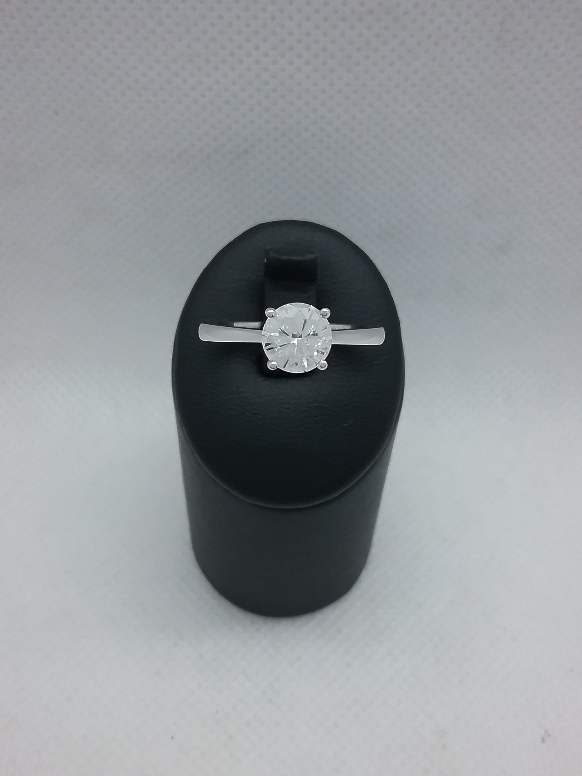 Bague solitaire en or blanc 750/1000e pesant 3,20 gr sertie d’un diamant taille brillant 1 carat