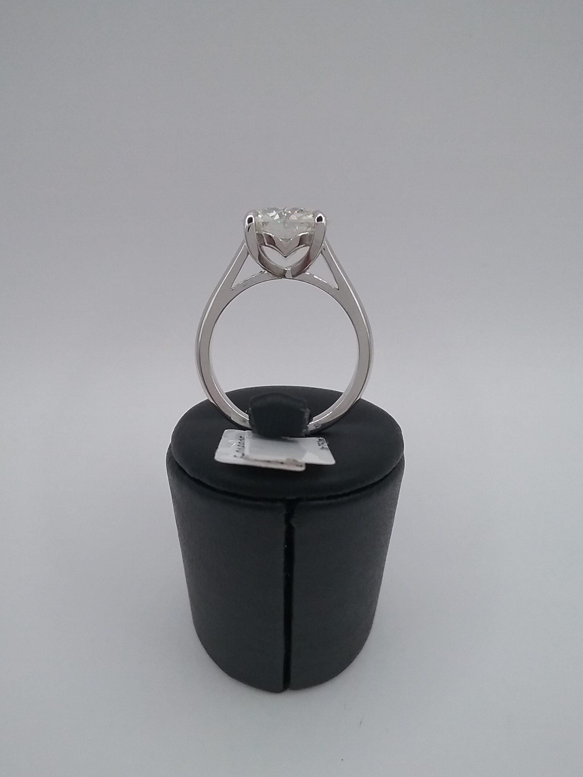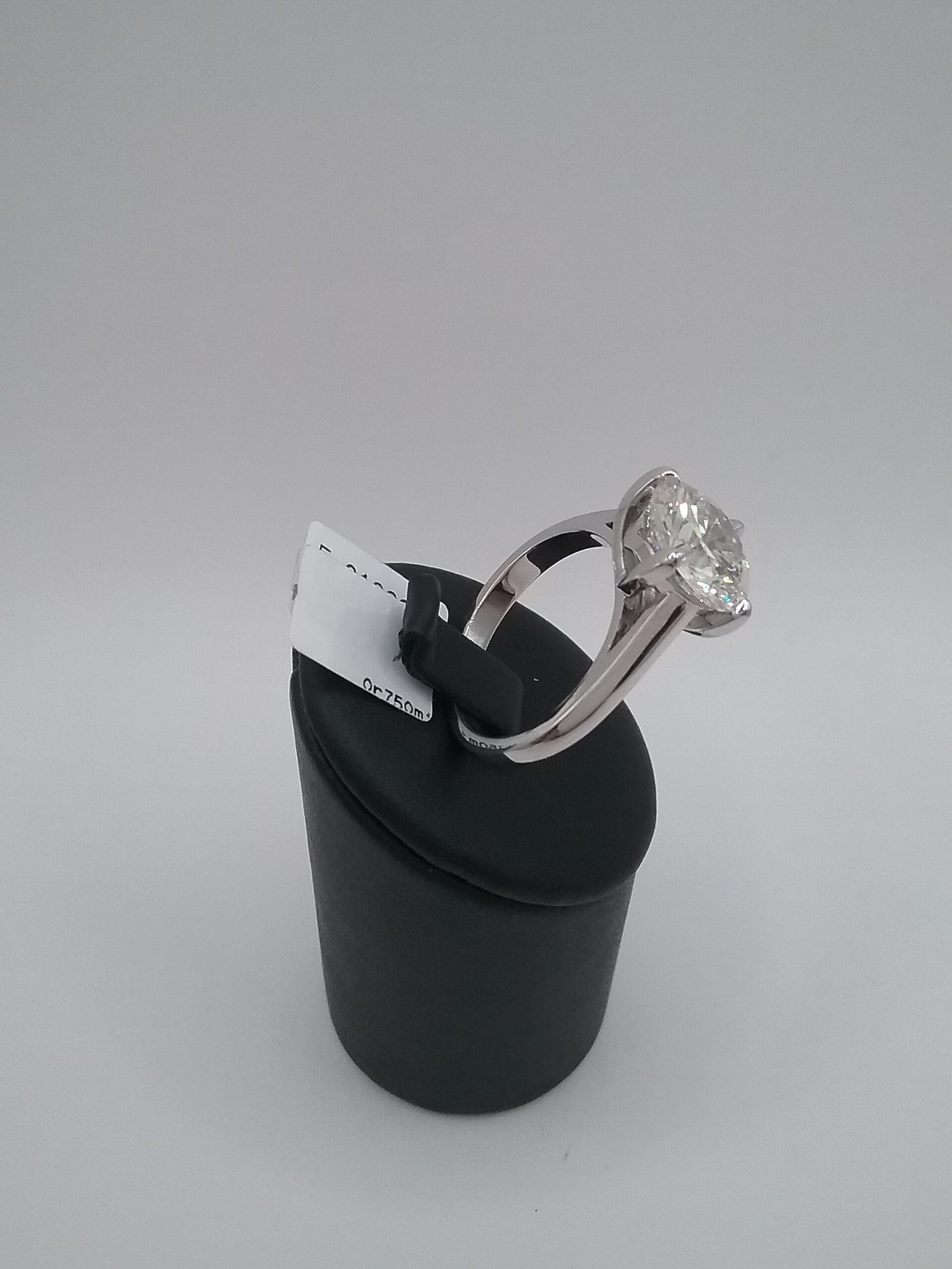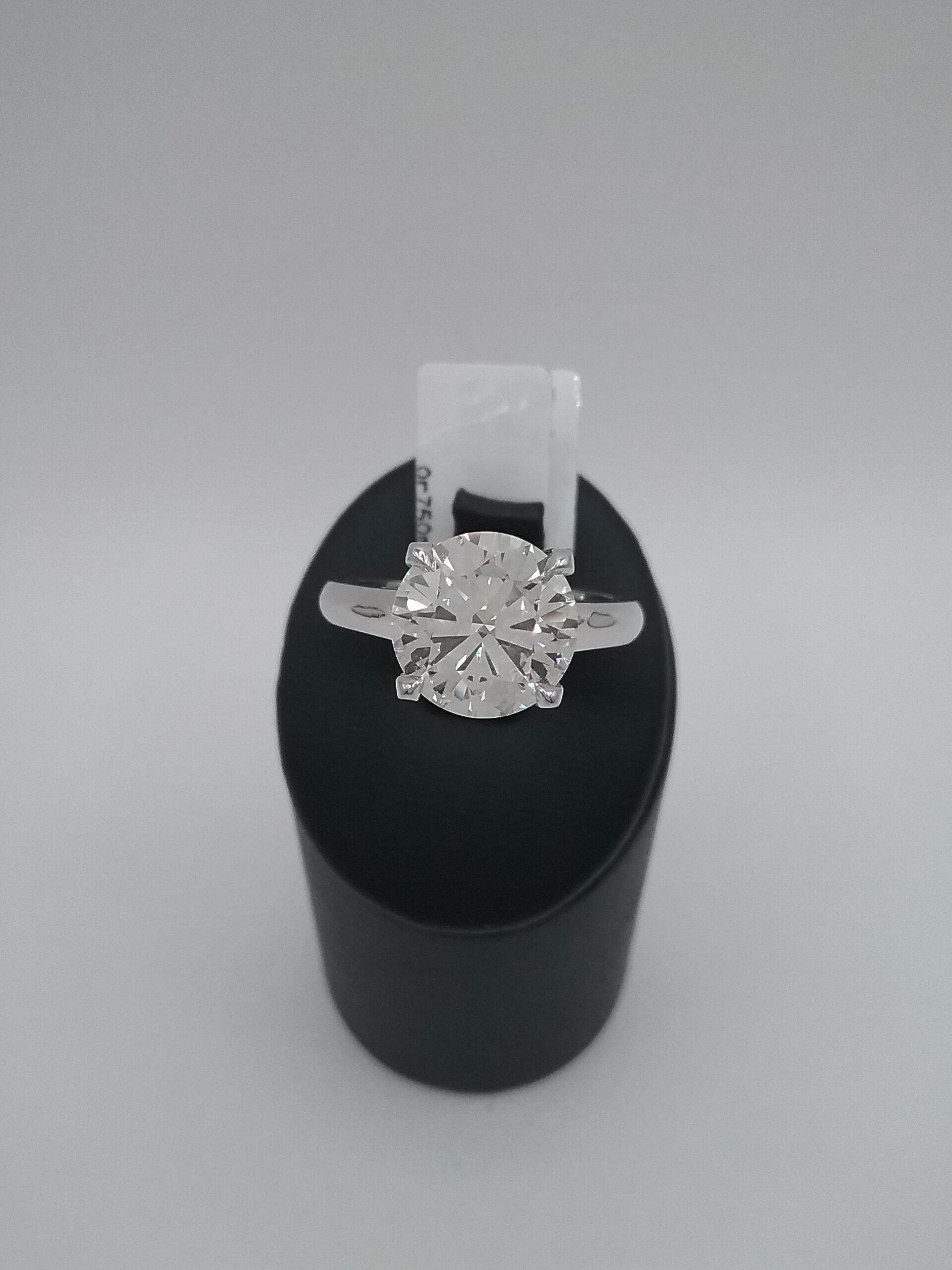 Bague solitaire en or blanc 750/1000e pesant 5,70 gr diamant taille brillant de 3,56 carats JK VS