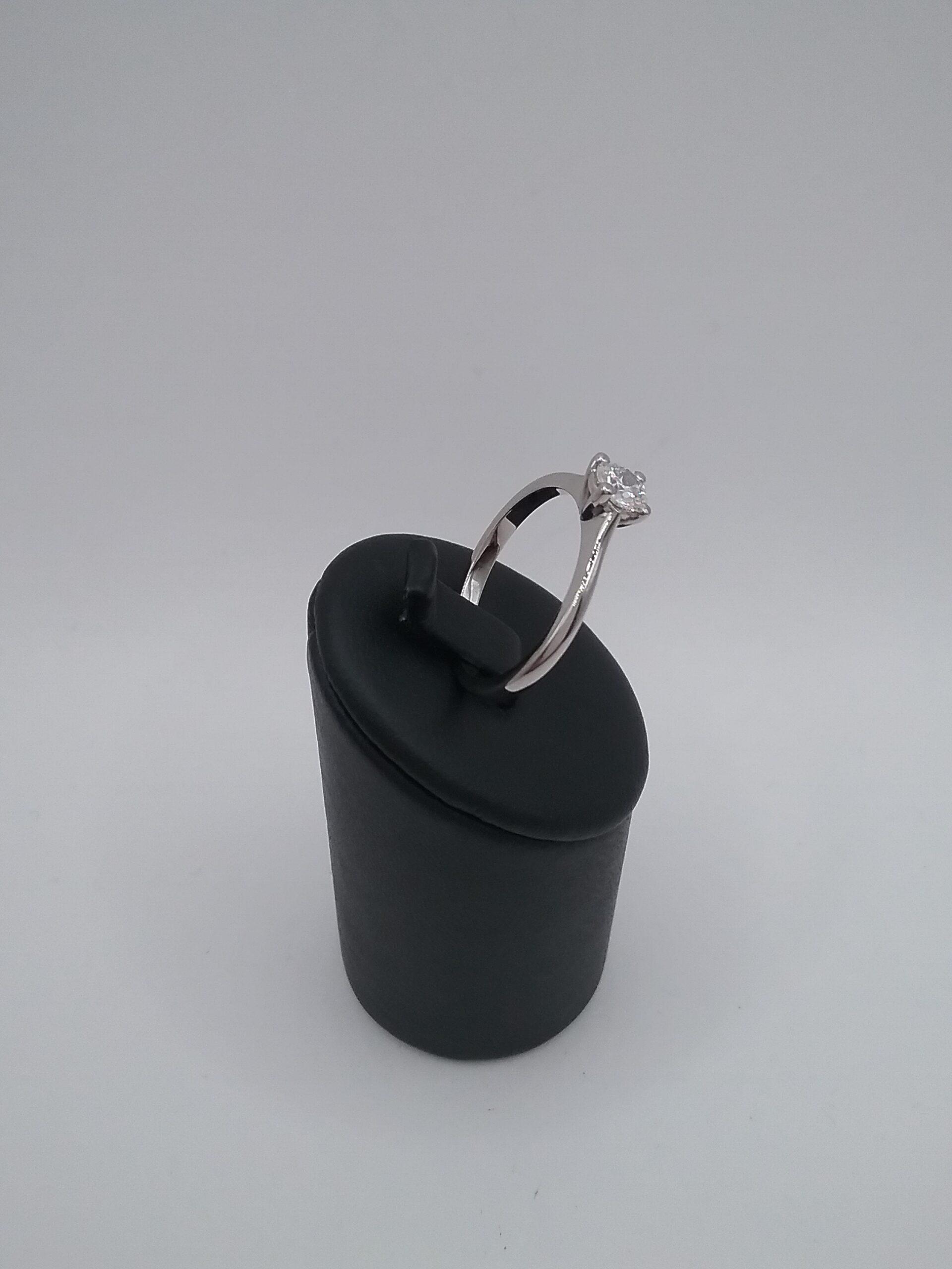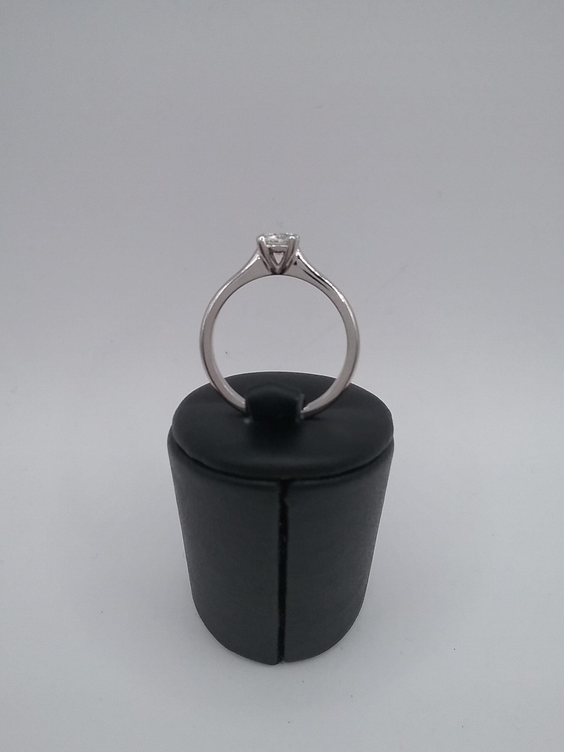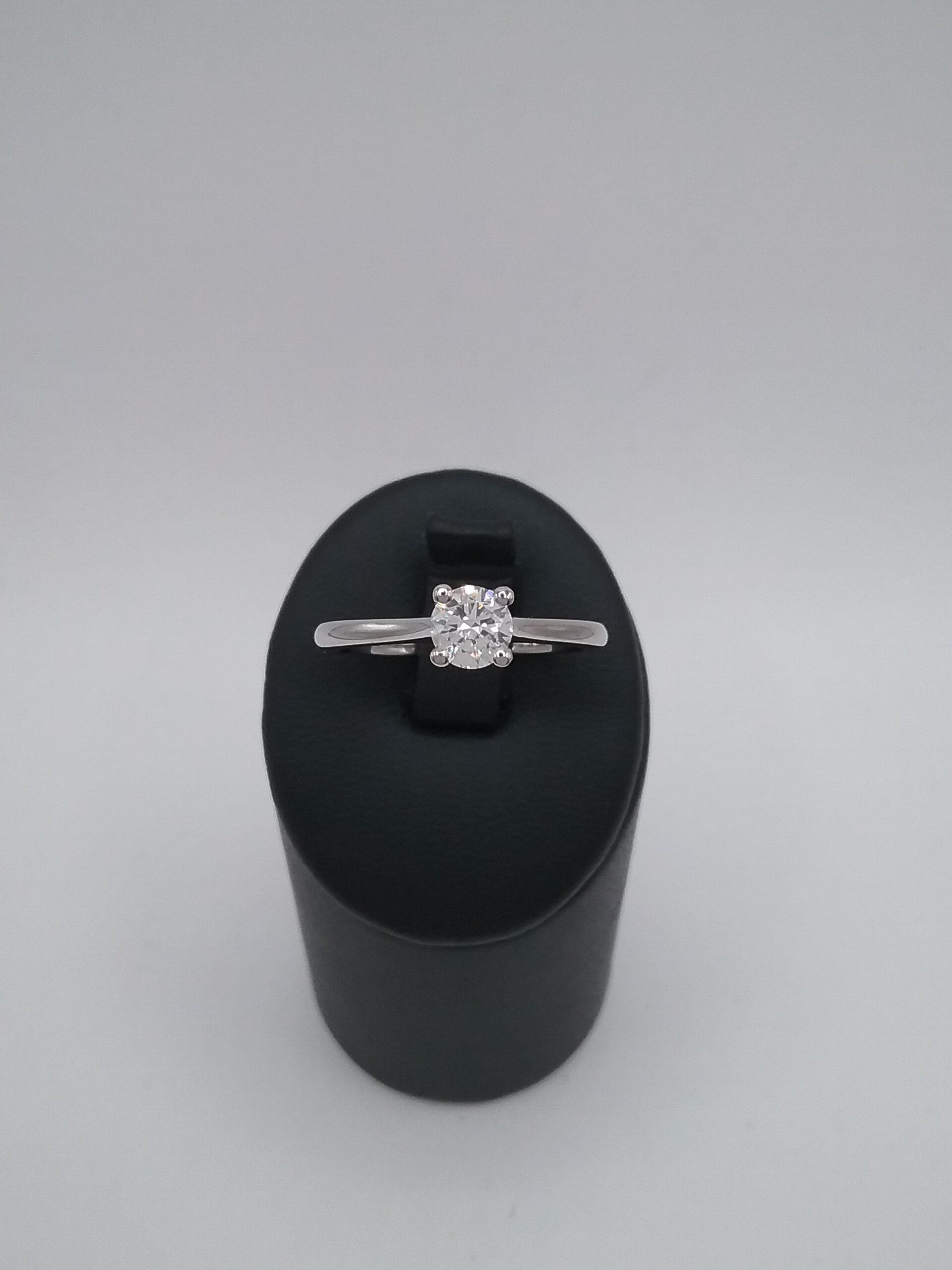 Bague solitaire en or blanc 750/1000e pesant 3,07 gr sertie d’un diamant certifié GIA de 0,40 ct GVS2