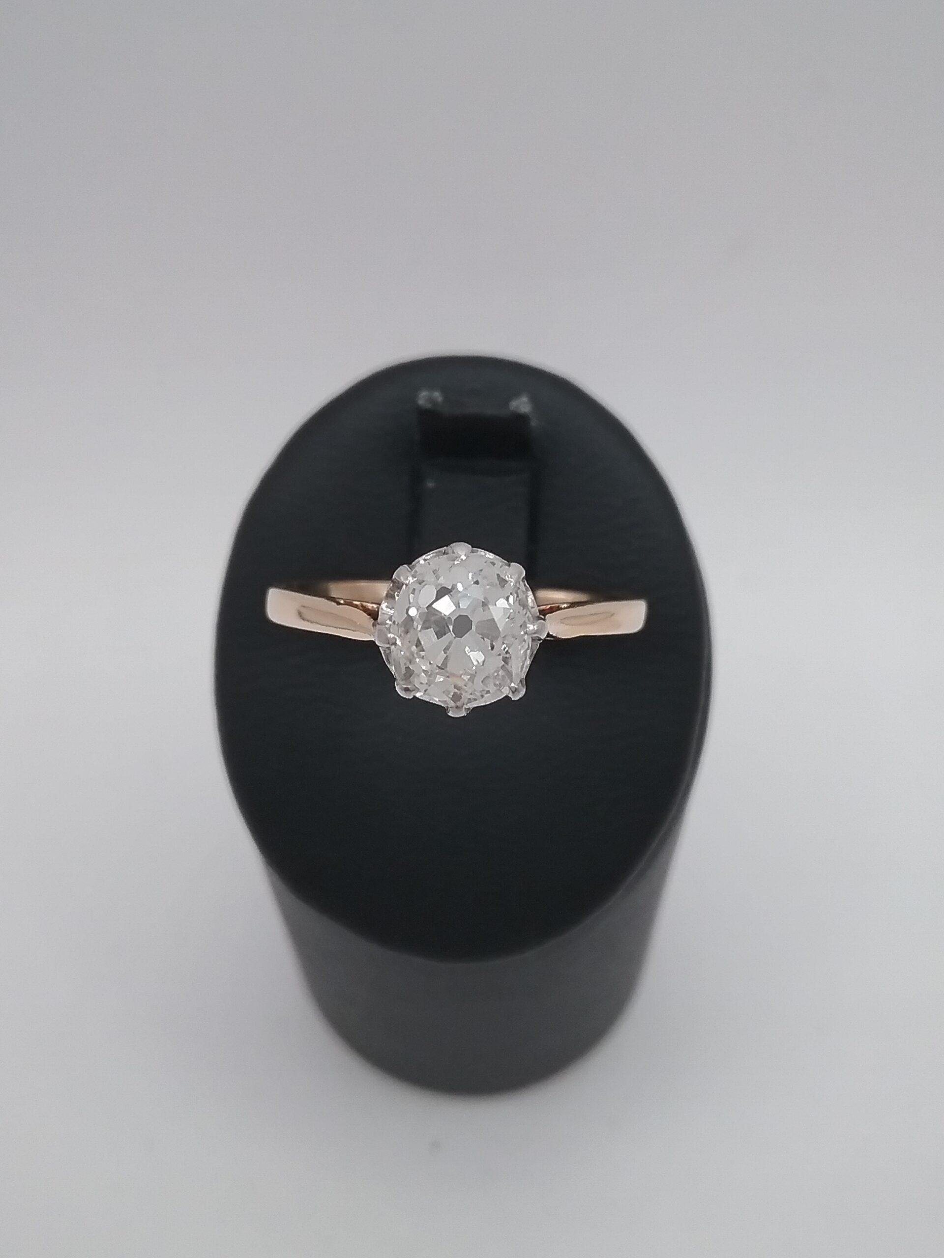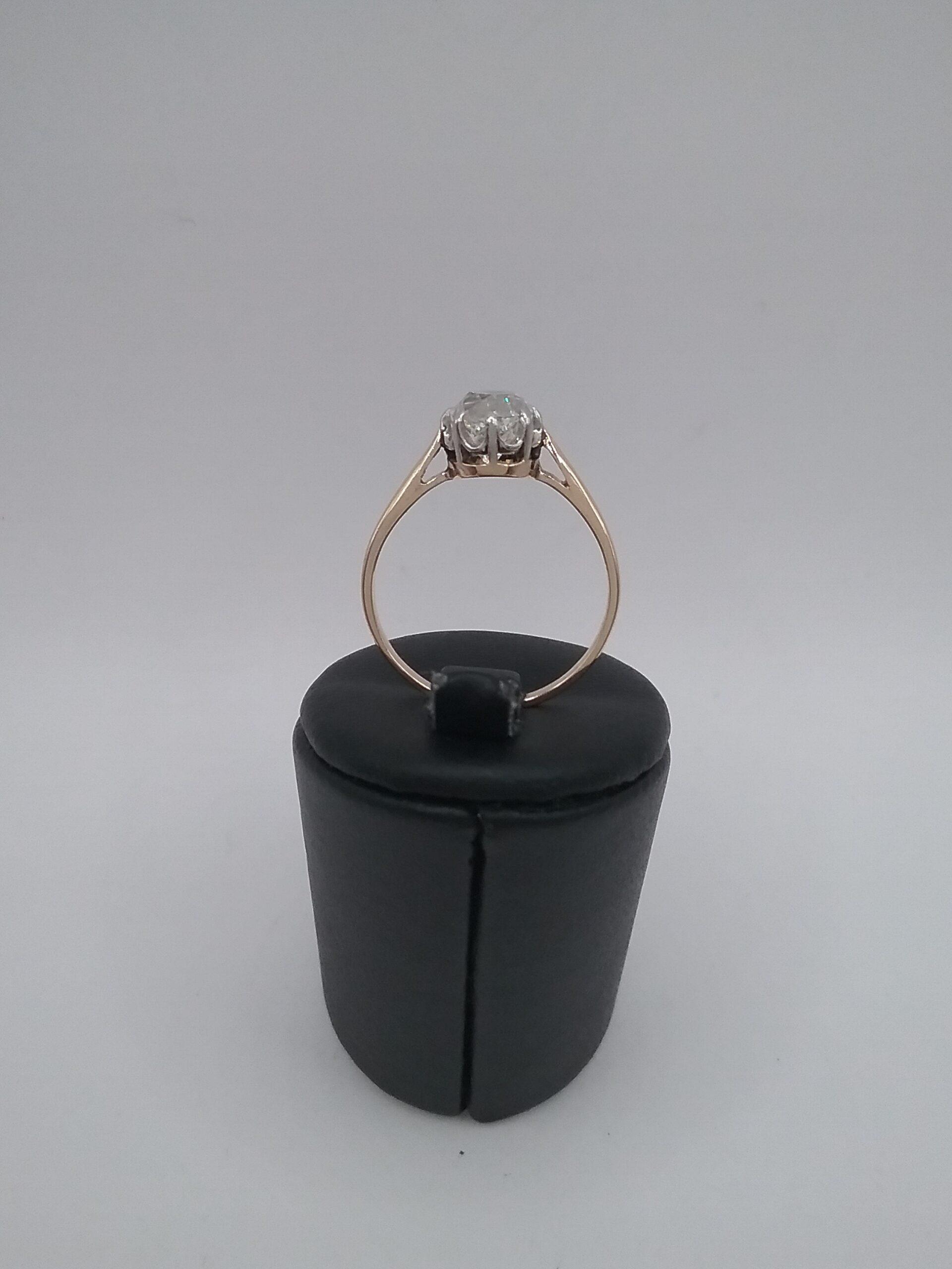 Bague solitaire en or jaune 750/1000e pesant 2,10 gr sertie d’un diamant taille ancienne d’ 1 carat