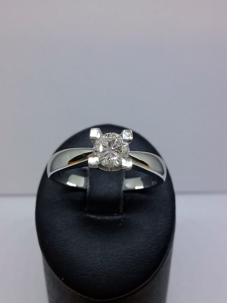 Bague solitaire or blanc 750/1000e pesant 5,50 gr sertie d’un diamant taille brillant 0.55 ct